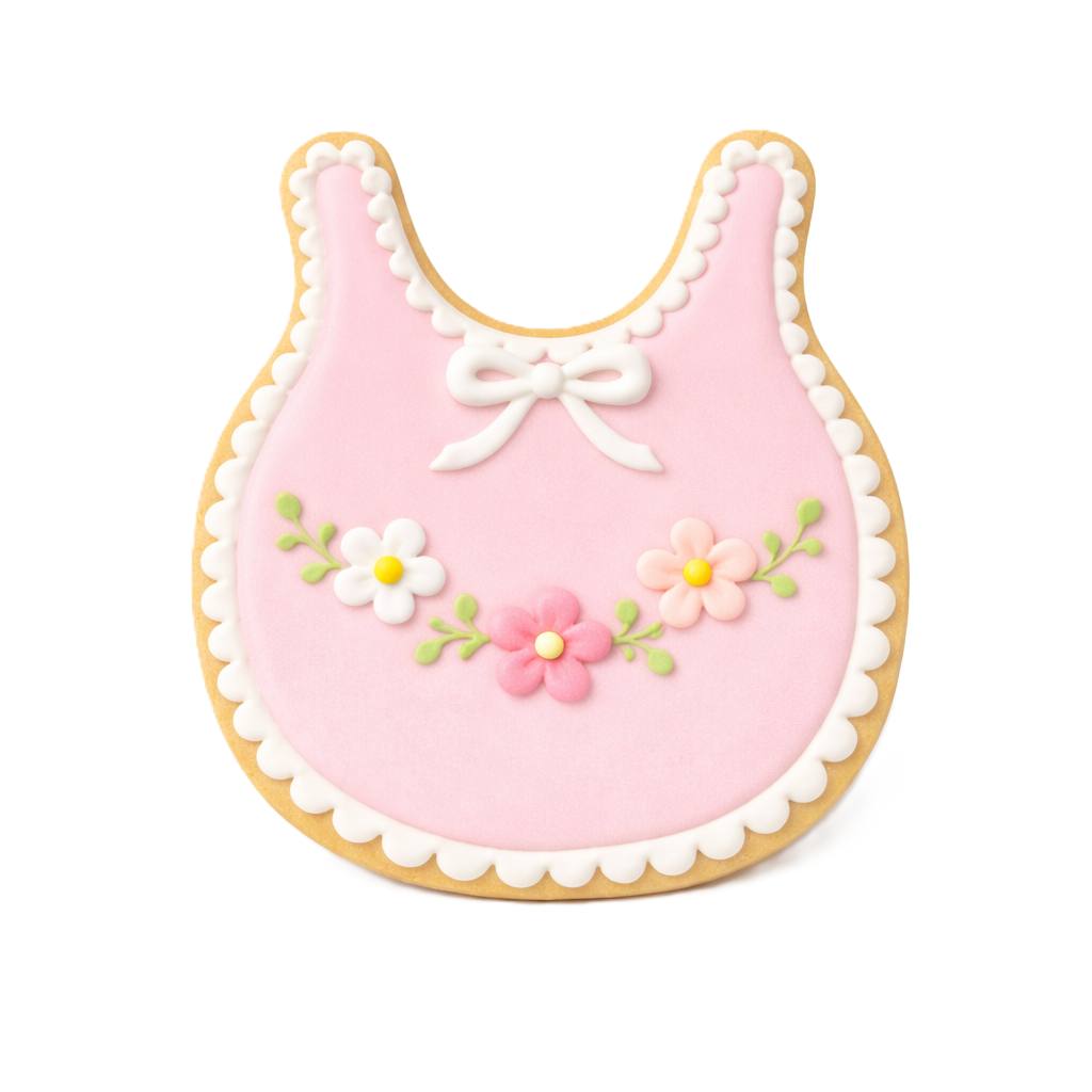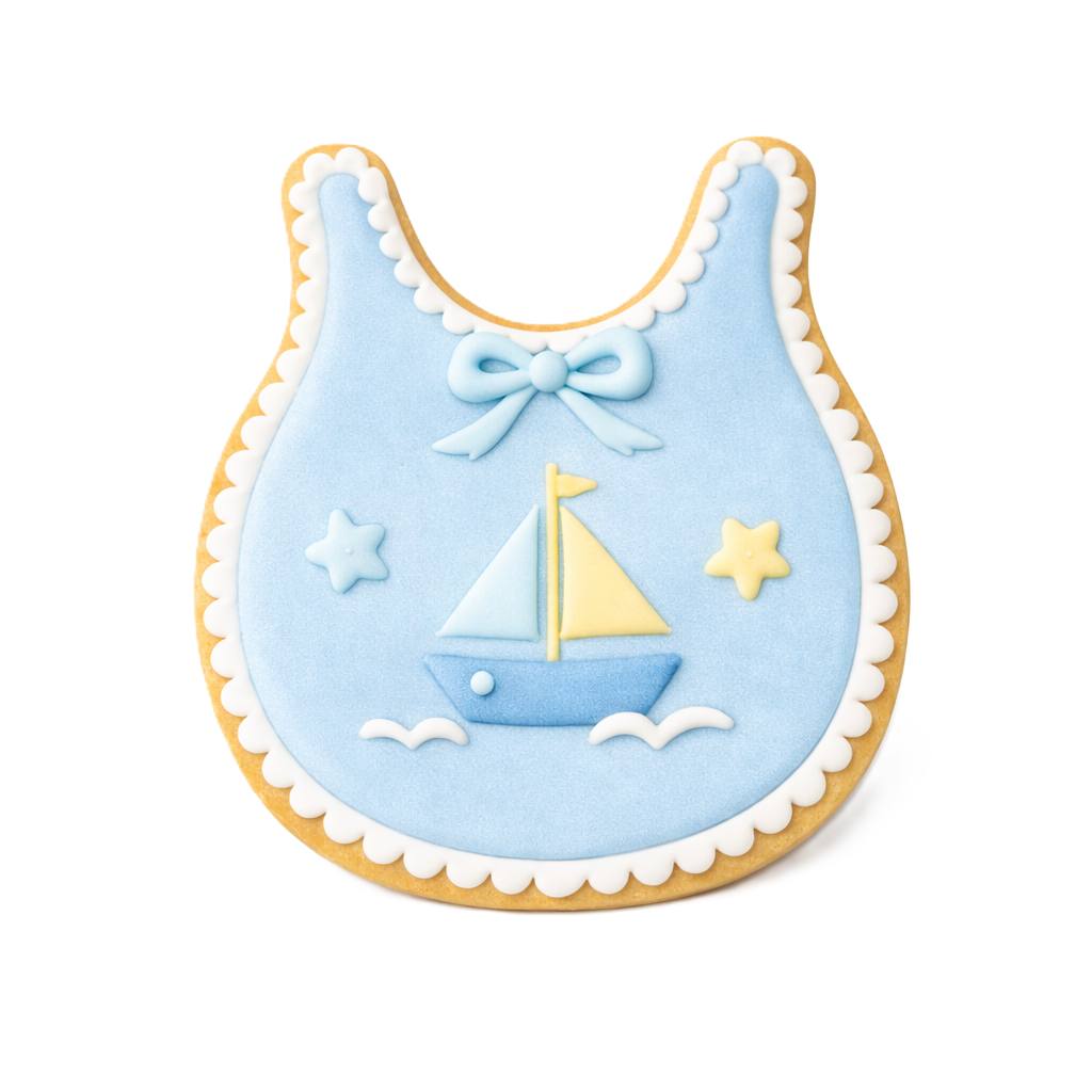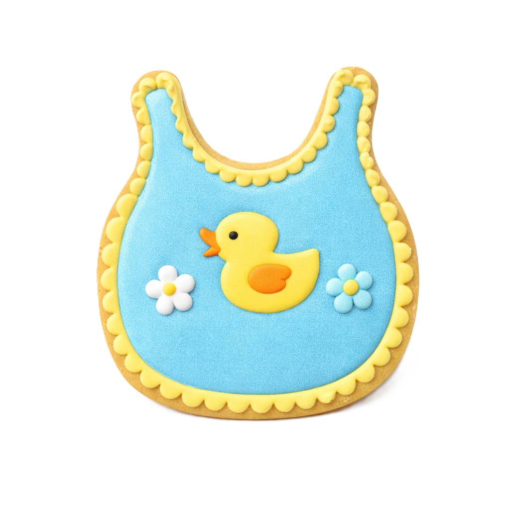 Use our 3″ Baby Bib cookie cutter to make boy or girl cookies for a baby shower.