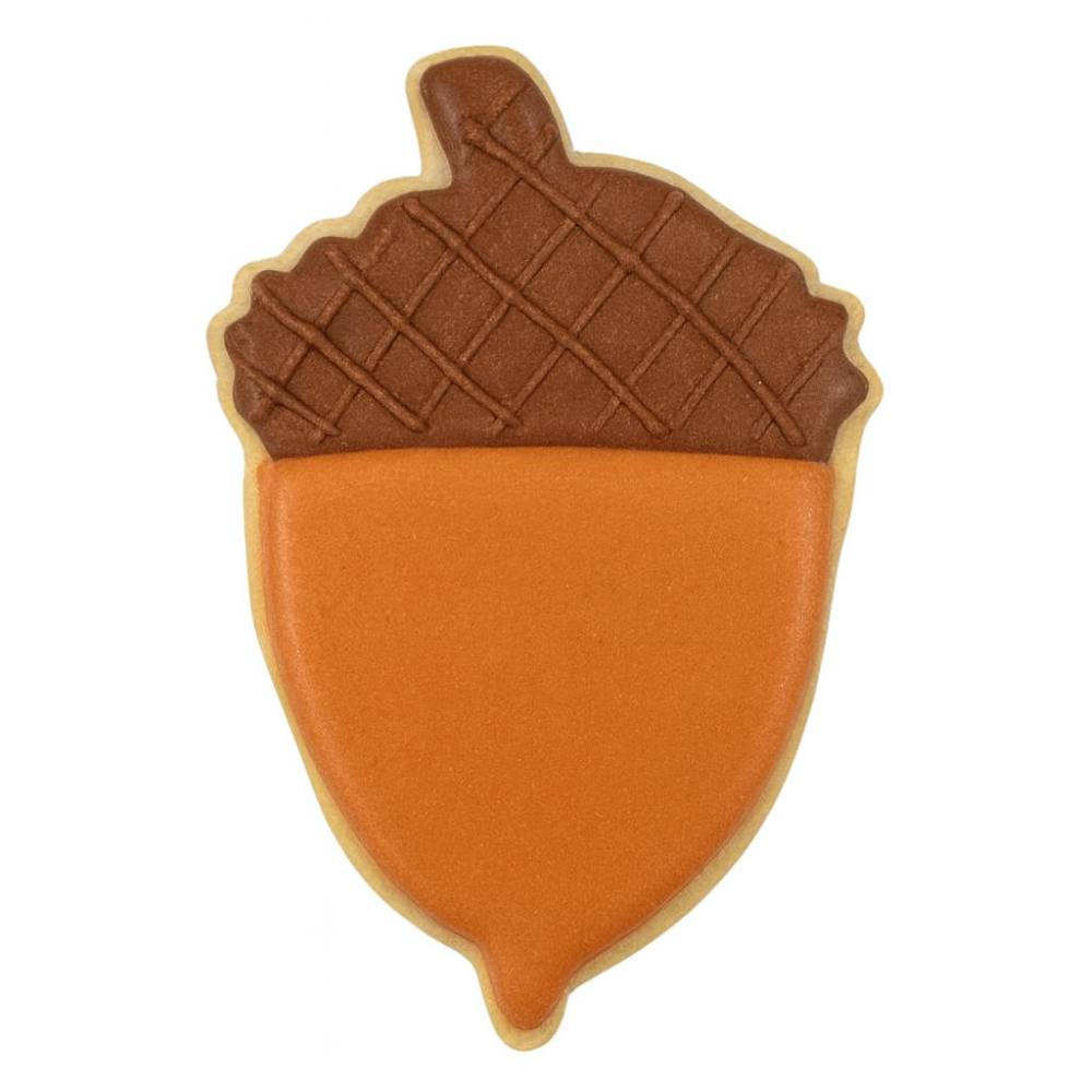 Use our acorn cookie cutter to frost fall cookies for your Family Thanksgiving Gathering. Use our autumn sanding sugar colors to create the raised top of the acorn. Take your favorite gingerbread cookie recipe and bake fall cookies. Out line the basic details of each cookie with white frosting. Beautiful and delicious. Beautiful to hang from a Christmas tree too.