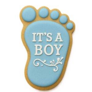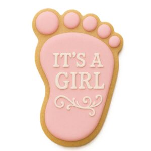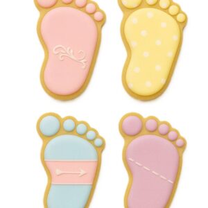Pink and Blue Baby Foot print cookies are great for a baby shower. If you’re trying to keep it a secret, mix it up with yellow and pale green feet.