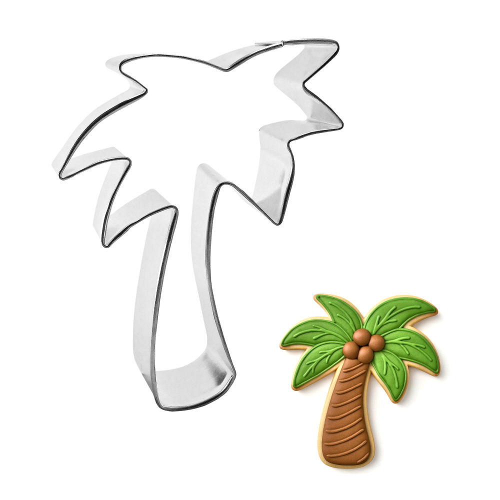 Use our palm tree cookie cutter to serve a dozen frosted palm tree cookies on a tray of sand (raw sugar) at your next beach party or wedding.