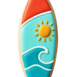 Our Surfboard Cookie Cutter is great for surfing into your next beach party with striped surfboard cookies. Don’t forget a pair of sunglasses and swim trunks. For the ladies frost colorful bikini and beach towels.