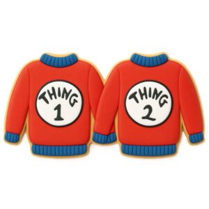Use our 4″ Sweater cookie cutter to frost flannel shirts for a hunter or lumber jack party. Decorate Ugly sweater cookies for Christmas or a winter party. Frost red Thing 1 and Thing 2 sweaters for a Dr. Seuss theme party. Decorate sweater ornaments for your Christmas tree, write each family members name on them and hang them.